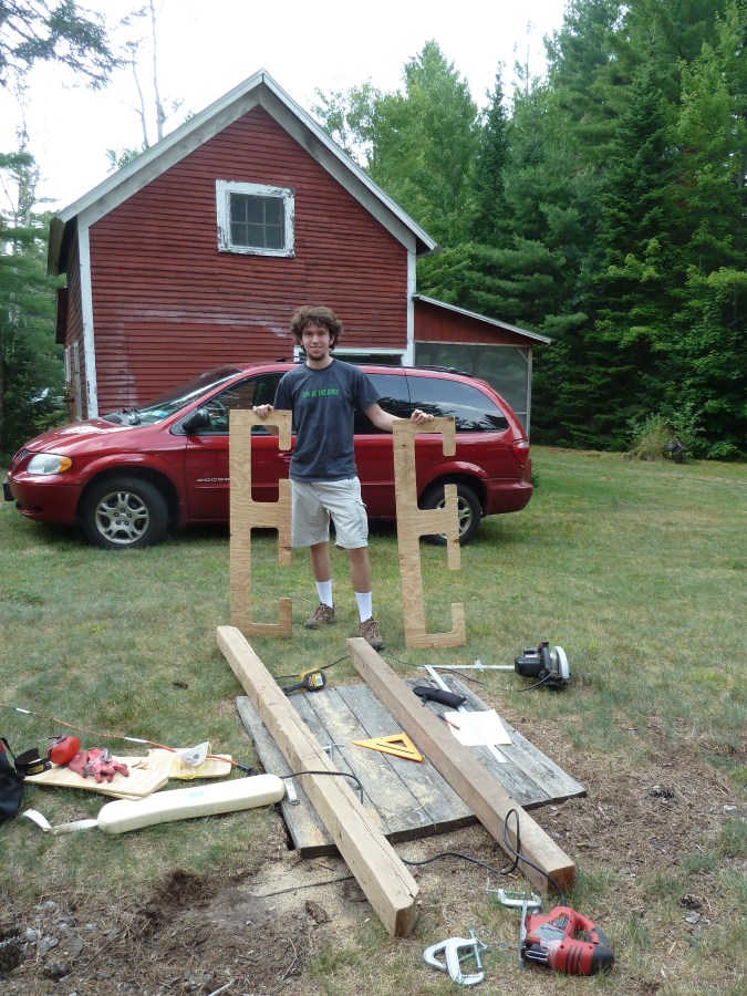 The finished products! You can’t see here, but the wood is pretty thin so I added reinforcing pieces along the T-shaped arm in the middle. (the guest house is in the background. The ugly patch of new paint was Dad’s idea of a good way to get rid of the leftover when he painted the main house.) Also, I realized the other day how awesome it is that my car matches the houses.